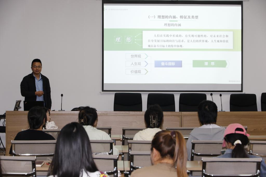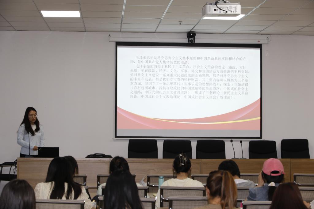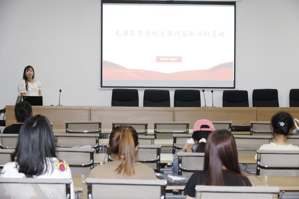 王政以“理想信念的内涵及重要性”为主题,从理想与信念的特征、关系等方面,讲述理想和信念的作用。黄海红围绕“以中国式现代化推进中华民族伟大复兴”为主题,从马克思主义中国化时代化的新境界为主要内容展开讲述。王涛的主题是“中国共产党执政底气之所在”,王祎心、檀丽红他们的主题是关于“毛泽东思想的内容和活的灵魂”,杨清潭、李唐他们以“毛泽东思想活的灵魂”为主题展开讲述。