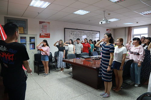 为纪念中国共产党建党97周年,回顾党史,继承和发扬党的光荣传统和优良作风。使党员进一步增强“四个意识”、坚定“四个自信”,根据公司党委《关于开展纪念建党97周年支部主题党日活动的通知》要求,公司研究生党支部于2018年6月27日在公司会议室开展纪念建党97周年主题党日系列活动-“我是党员”集中宣誓活动。公司党总支书记马凤英、副书记陈以庆及研究生支部全体党员共同参与此次活动。