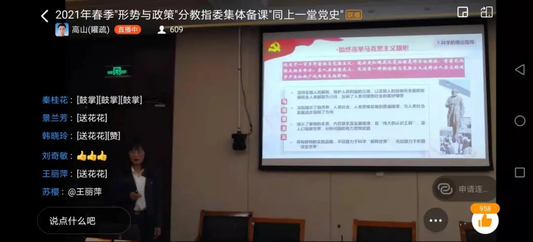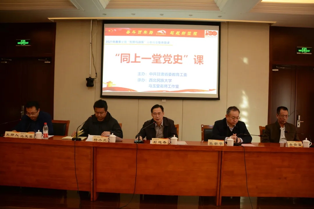 为进一步推进高校“形势与政策”课程建设,更好开展党史学习教育,按照甘肃省委教育工委统一安排,3月26日,“形势与政策”分教指委2021年春季学期“形势与政策”课集体备课暨“同上一堂党史课”活动在西北民族大学举行。本次集体备课的主题是:喜迎建党百年华诞,汲取奋进智慧力量。全省800余位“形势与政策”课专兼职授课教师通过线上线下参会学习,公司教师刘海霞在备课会上进行了教学展示。会议由“形势与政策”分教指委副主任马玉堂教授主持。