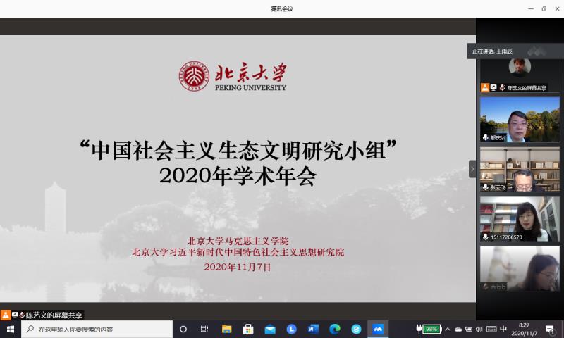 2020年11月7日,由北京大学伟德体育和北京大学习近平新时代中国特色社会主义思想研究院共同主办的“中国社会主义生态文明研究小组2020年学术年会”线上会议举行。来自北京大学、中国人民大学、南开大学、山东大学、华东师范大学、北京航空航天大学、中央财经大学、中南财经政法大学、北京邮电大学、大连海事大学、北京林业大学、福建师范大学、海南师范大学、南京工业大学、南京林业大学、山西大学、海南大学、延安大学、南京信息工程大学、bevictor伟德官网、东华理工大学、成都理工大学、山东建筑大学、中央党史和文献研究院、生态环境部南京研究所、中共青海省委党校、中共湖北省委党校、慕尼黑政治公司等国内外院校与研究机构的近60位学者出席了会议。公司刘海霞副教授主持了上午第一时段的会议,并就西北地区生态治理问题做了交流发言。