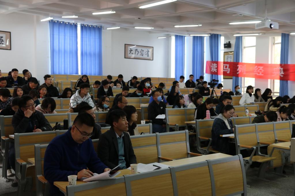 本次经典诵读活动由王海霞老师与张铁军老师分别解读马克思著作《商品拜物教性质及其秘密》和毛泽东选集《人的正确思想是从哪里来的?》共同完成。王海霞老师的解读从商品物与物的关系中揭示出人与人之间不平等的关系,揭示出价值与使用价值、具体劳动与抽象劳动、私人劳动与社会劳动、个人劳动时间与社会必要劳动时间之间的矛盾;张铁军老师从一个独特的角度切入,哲学内涵丰富,引发我们从不同的角度对于这篇文章的思考,使得我们切实感受到这篇文章思想内涵丰厚。史俊杰老师带领同学们朗诵原文将整个氛围推到了高潮。
