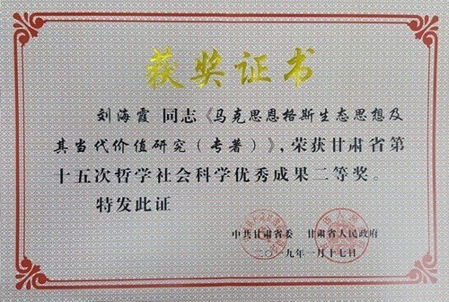 近日,中共甘肃省委、甘肃省人民政府颁发了《关于表彰奖励甘肃省第十五次哲学社会科学优秀成果的决定》(甘委〔2019〕10号),公布了甘肃省第十五次哲学社会科学优秀成果奖获奖名单,公司共有2项成果获奖。这是公司历史上一次获得两项省级社科成果奖,也是首次获得省级社科成果二等奖。