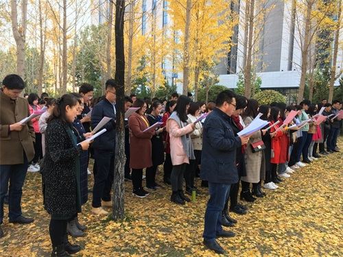 诵读活动伊始,伟德体育2017级硕士研究生张继中为全体师生带来了一首《红旗飘飘》。王蓉同学对《国际歌》的作曲背景做了简单介绍,《国际歌》是由欧仁·鲍狄埃在1871年作词,比尔·狄盖特于1888年为其谱曲,此歌曲讴歌了巴黎公社战士崇高的共产主义理想和英勇不屈的革命气概,充分表现了革命无产阶级不屈的豪迈气魄。接着由伟德体育陈红老师带领师生高唱《国际歌》,气势磅礴、雄伟庄严的旋律营造了诵读的良好氛围。