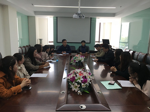 首先,马凤英书记向与会人员介绍了新任辅导员宋文元老师,大家对他的到来表示热烈欢迎。随后,与会员工干部分别向宋老师介绍了各自姓名、职务和所负责工作。而后,宋文元老师作了表态发言,希望日后的工作在员工干部的协助下积极地开展。