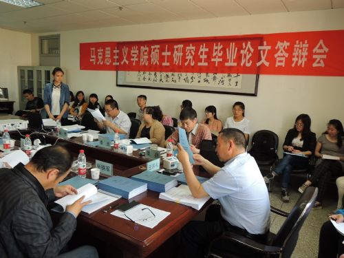6月9日,伟德体育举办2015届硕士研究生毕业论文答辩会。参加答辩会的有各硕士生导师、2015届马克思主义基本原理专业和思想政治教育专业30位硕士研究生,部分13级以及14级研究生旁听了论文答辩。 今年硕士毕业论文答辩与往年最大的区别是,采用了毕业生导师回避制,每位毕业生的答辩委员会全部由非毕业生导师担任。答辩会特邀西北师范大学伟德体育经理,博士生导师王宗礼教授担任马克思主义基本原理专业答辩委员会主席,西北师范大学许信胜教授担任思想政治教育专业答辩委员会主席,答辩委员由公司各学科带头人及具有教授职称导师担任。按照教育部《博士硕士学位论文抽检办法》,和公司研究生院论文抽检结果通报精神要求,从公司领导到各位导师对研究生的培养工作都高度重视,对硕士论文质量要求都比较严格。研究生在正式答辩前都经过了论文答辩初稿审查、盲评稿审核、论文盲评、论文答辩稿审核等几个阶段,在各个阶段都得到了导师和专家们的悉心指导。正式答辩开始之前,公司学术委员会再次对毕业生论文进行了逐一审核,并提出了进一步修改意见,6月5日对提交的论文再次进行逐一审核,审核不通过的毕业生将延期答辩,推迟毕业。答辩会前答辩委员会就答辩环节、答辩顺序、论文要求、评判标准以及优秀论文名额等问题召开了答辩预备会,对以上各项内容作了周密安排。