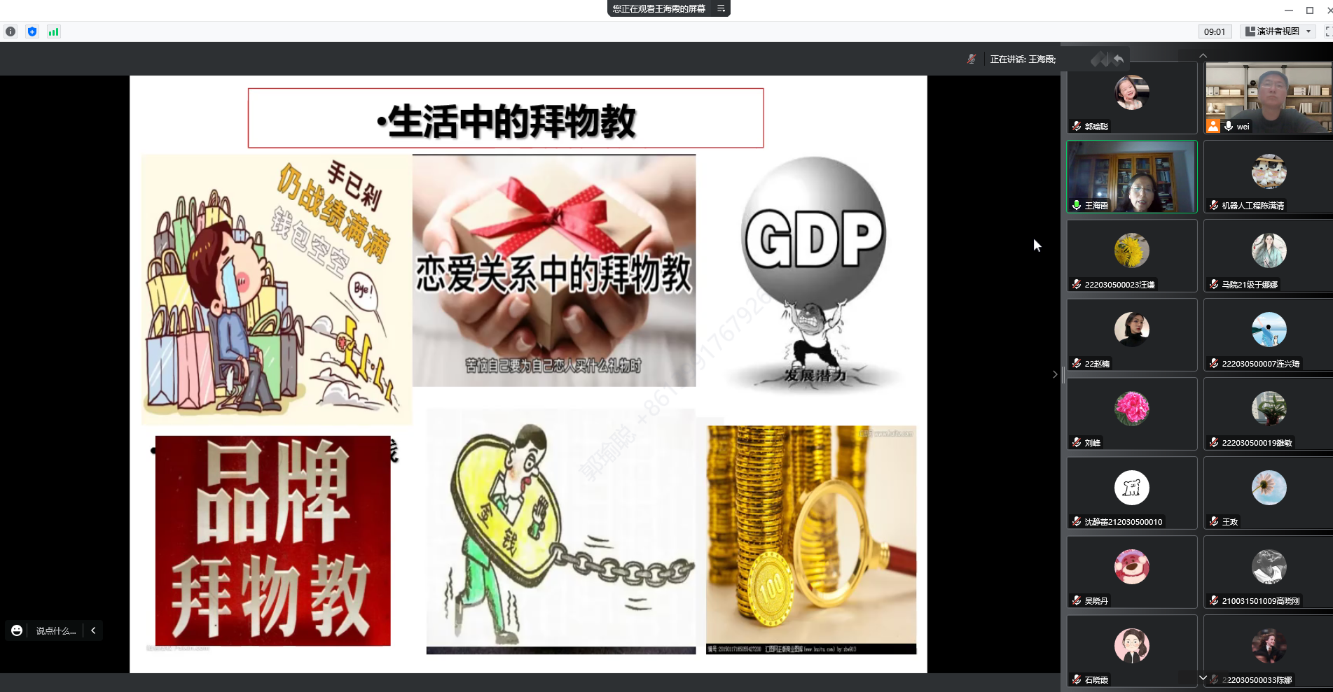 活动第一部分邀请公司王海霞教授对《商品的拜物教性质及其秘密》作解读。商品拜物教是指在以私有制为基础的商品经济中,人与人的社会关系被物与物的关系所掩盖,从而使商品似乎具有了决定商品生产者命运的神秘力量。马克思把商品世界的这种神秘性比喻为拜物教。王老师通过对文章的解读,指出我国社会主义初级阶段的国情决定了我们还需要发展社会主义市场经济,因此,新时代的青年人应当深刻认识商品的拜物教性质及秘密,树立科学的人生观、价值观,肩负起建设有中国特色社会主义现代化的伟大使命,真正实现人生的价值。