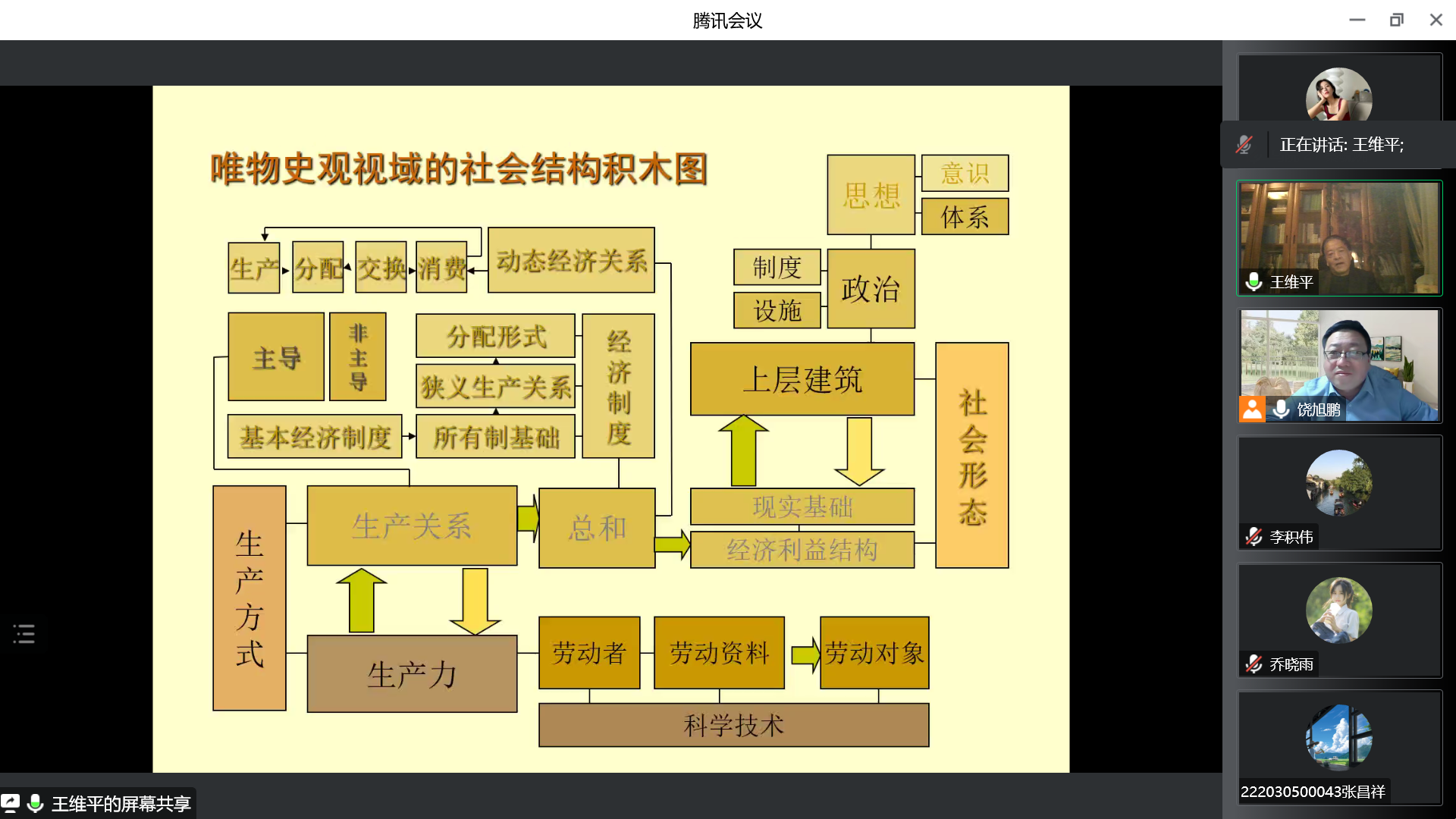 “读马列经典,求时代真理”。2022年11月12日,公司第三场马列经典诵读活动在腾讯会议如期举行。第三场活动特邀请兰州大学伟德体育教授王维平教授,以线上方式为大家解读《<政治经济学批判>序言》的主要内容。活动由伟德体育教师、全国思政课名师工作室(bevictor伟德官网)全体学员、2022年秋正在修读“马克思主义基本原理”课程的老员工、伟德体育一、二年级研究生参加,其他公司自愿参会的同学也参与了本次活动。活动由伟德体育经理饶旭鹏教授主持。