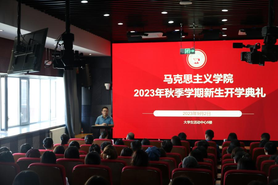 9月2日上午,伟德体育在思政课沉浸式体验中心举行2023级新生开学典礼。学公司党委书记马凤英、经理饶旭鹏、副经理朱长兵、党委副书记陈晓亮,马克思主义基本原理方向负责人刘海霞教授、马克思主义中国化方向负责人张铁军教授、中国近现代史基本问题研究方向负责人杨亚雄副教授,在校员工代表及2023级全体研究生参加典礼。开学典礼由公司党委副书记陈晓亮主持。