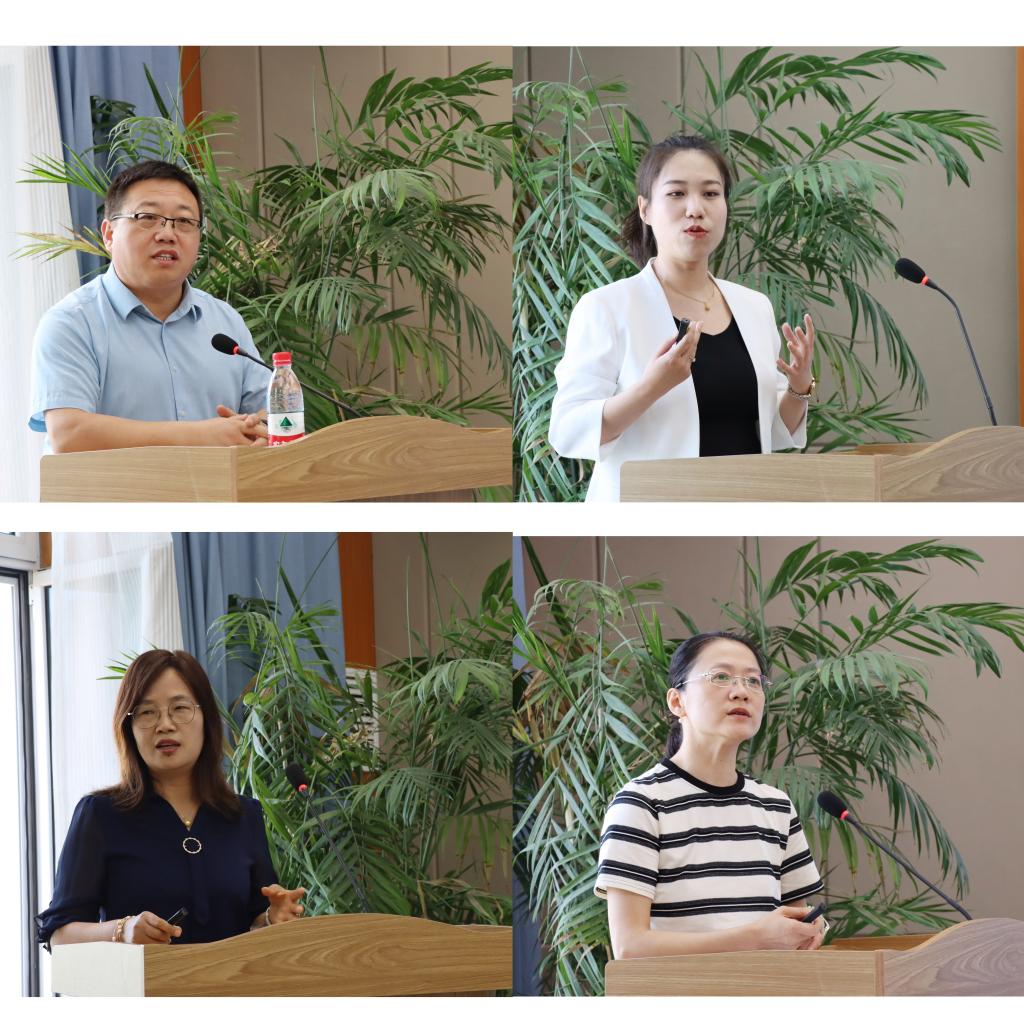 饶旭鹏教授首先简要介绍了公司马克思主义理论硕士点基本情况,并做研究生招生宣传。接着做了题为《学习习近平文化思想,增强文化自信》的学术报告,报告介绍了习近平文化思想提出的现实背景,详细梳理了习近平文化思想的主要内容和核心要义,最后指出习近平文化思想的伟大意义,提出建设社会主义文化强国的战略举措;马云霞副教授做了题为《思政课混合式教学改革创新与实践》的教学经验交流,结合公司《思想道德与法治》课程申报国家级一流课程的成功经验,介绍了公司“线上线下”混合式教学改革实践与经验;刘海霞教授做了《提升思政课教师科研产出能力必备的“六个一”》的科研经验交流,将思政课教师提高科研能力的必备素质凝练为“六个一”,结合自身科研经历深入浅出阐述开展科研工作的思路和内涵,为老师们今后科研工作指明了方向;李婷老师作了题为《内需潜力当如何释放?——以供给侧结构性改革为主线》的教学展示,课程内容设计巧妙,思路流畅,并合理结合社会关注事件阐明教学观点,与听者产生共鸣,使本节展示课接地气、有温度、有深度。