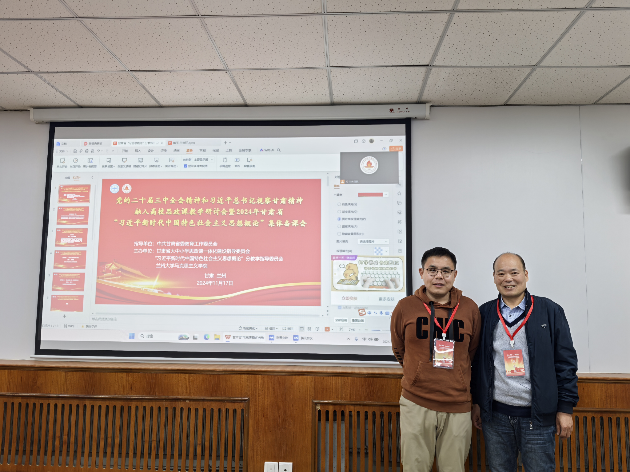 为深入学习和贯彻习近平总书记视察甘肃时的重要讲话精神,并将其融入高校思想政治理论课程的教学中,推动“习近平新时代中国特色社会主义思想概论”课程教学改革与创新,2024年11月17日,伟德体育教师张铁军和旦巴贡布参加了由中共甘肃省委教育工作委员会指导、兰州大学伟德体育主办的“党的二十届三中全会精神与习近平总书记视察甘肃精神融入高校思政课教学研讨会暨2024年甘肃省‘习近平新时代中国特色社会主义思想概论集体备课会’”。