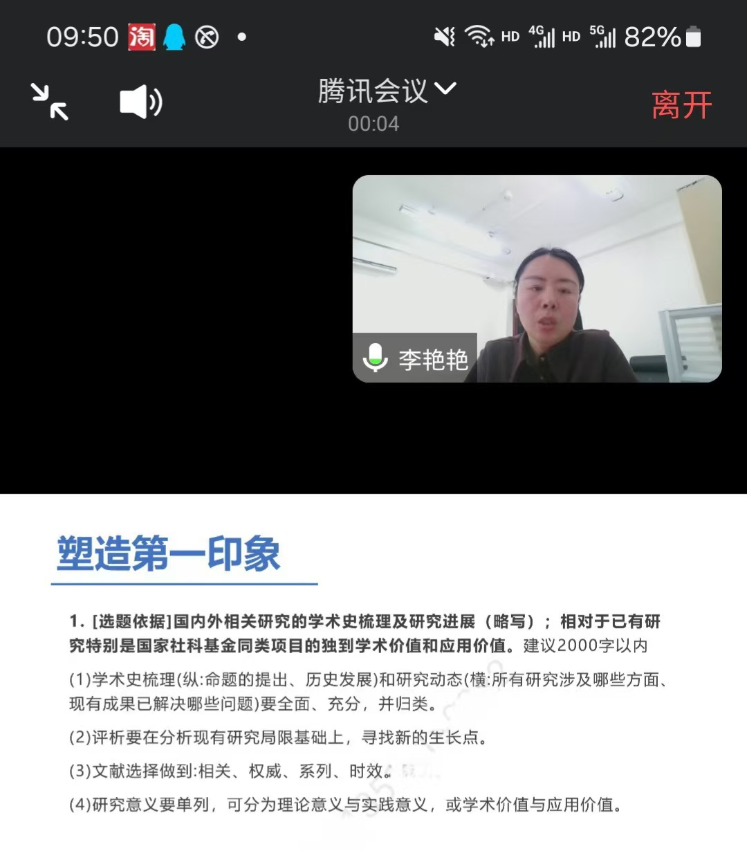 李艳艳教授以《国家社科基金项目申报:从选题到论证》为题,结合申报国家社科项目的成功经验,从申报选题、申报书的撰写、排版及申报注意事项等方面进行了十分详细的讲解,并就每位教师的申报题目具体情况,逐一进行了指导。公司学术委员会同拟申报国家级项目的老师就拟定的申报题目等内容进行了交流和指导。