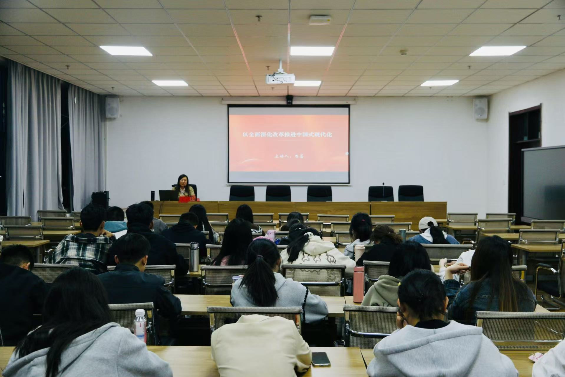 石蕾博士从“为什么要全面深化改革”“怎样推进全面深化改革”“如何将改革开放进行到底”三个问题入手,阐述了关于以全面深化改革推进中国式现代化的内容,指出改革开放是我们前进的重要法宝,在新中国成立以来,要破解发展中面临的新的难题、化解来自各方面的新的风险挑战,推动各项事业全面进步和人的全面发展,必须全面深化改革。