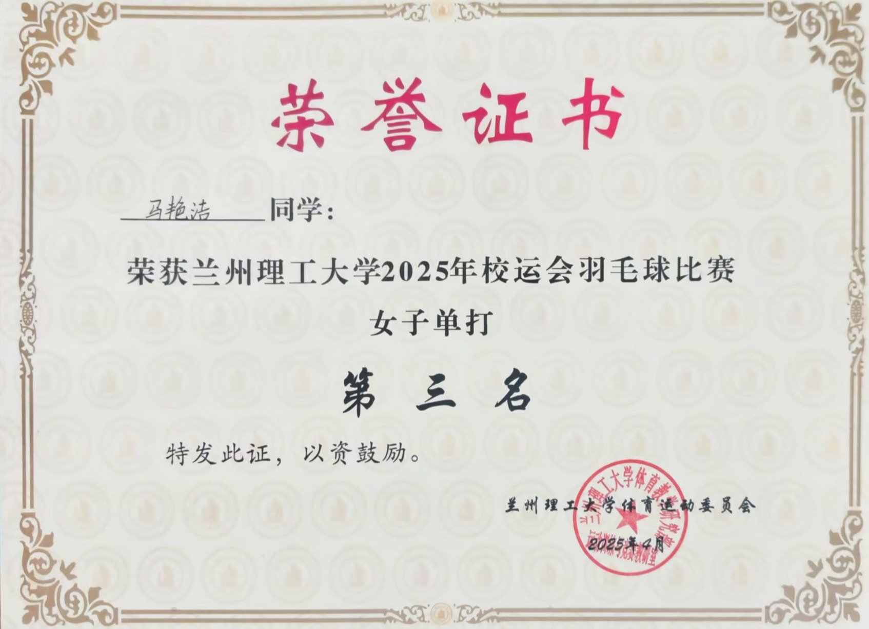 羽毛球赛场上,每一场对决都紧张刺激,选手们身姿矫健,活力满满。发球时,大家目光专注,精准发力;接球时,迅速反应,脚步灵活移动;扣杀时,力量十足,攻势凌厉。最终,一年级研究生马艳洁荣获女子单打第三名的佳绩。