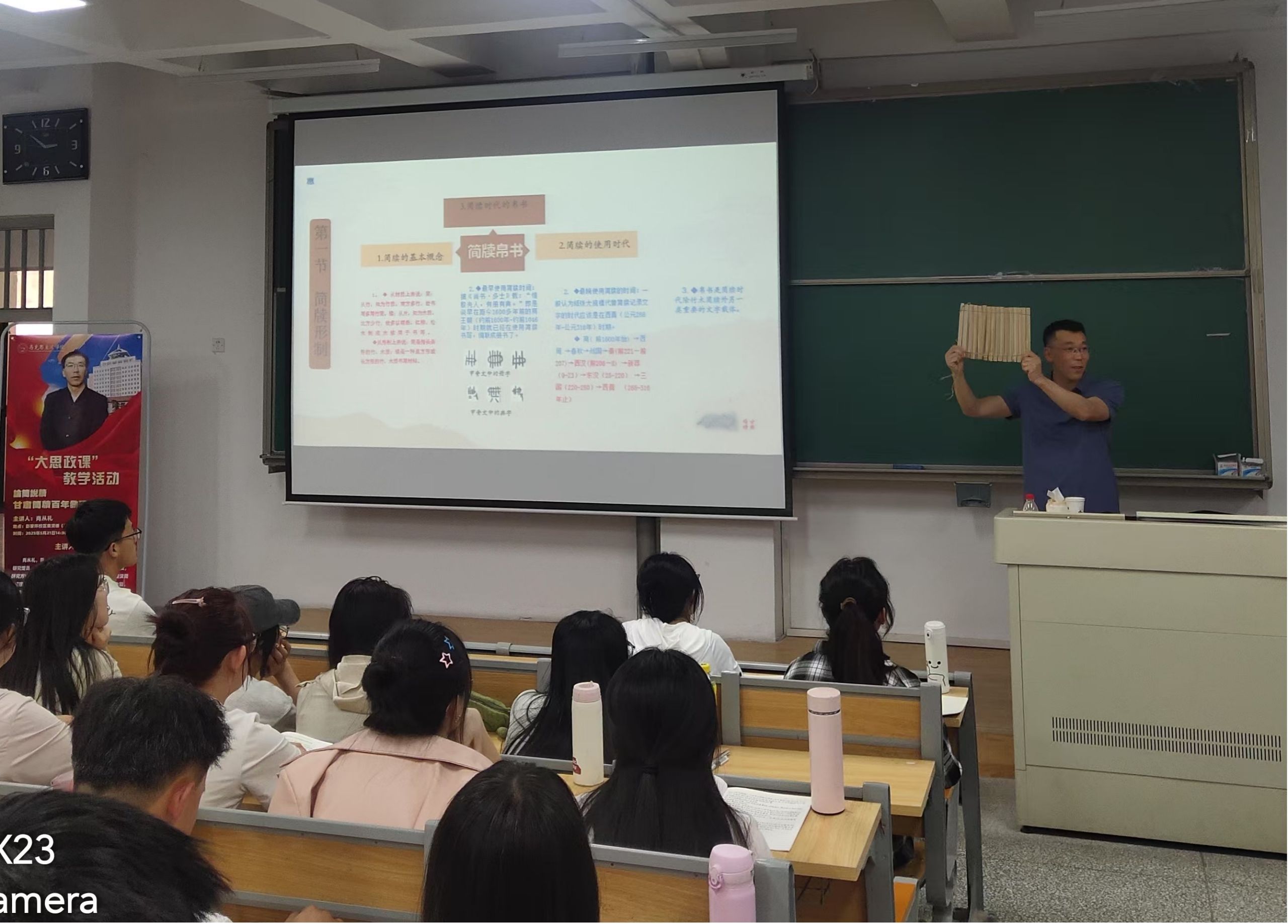 为深入贯彻落实习近平总书记关于“大思政课”的重要指示批示精神,充分发挥“大思政课”实践教学基地育人功能,提高思政课的亲和力和吸引力。5月21日下午,伟德体育在彭家坪校区集贤楼(原西教2号楼)204教室举办“甘肃简牍——汉代丝绸之路的百科全书”为主题的“大思政课”教学活动。伟德体育教师、80余名同学参加了此次教学活动。