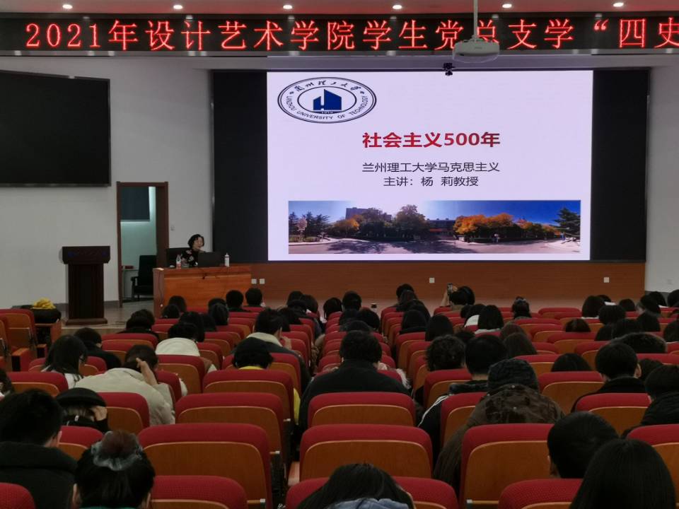 为深入学习贯彻习近平总书记关于公司党建和思政工作的重要指示批示精神,推动公司师生深入学好党史、新中国史、改革开放史、社会主义发展史,1月5日下午,设计艺术公司党总支邀请伟德体育教授杨莉老师,在校本部图书馆二楼报告厅组织开展学“四史”系列党课——社会主义500年。参加本次集中党课的有公司党委副书记杨利玲老师、员工各党支部书记、公司全体在公司党员和积极分子。