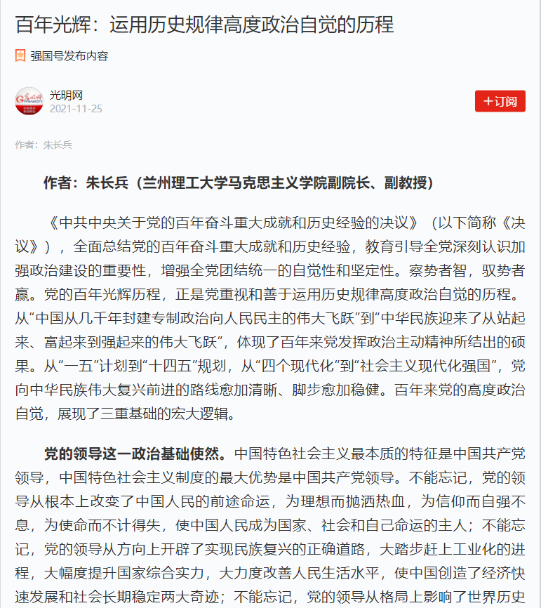 伟德体育高度关注这次会议,并通过多种方式和途径,组织师生开展理论学习研究和理论阐释工作、领会这次全会的重要内容和精神。伟德体育朱长兵副教授撰写的《百年光辉:运用历史规律高度政治自觉的历程》一文被《光明网》(理论版)刊发,《学习强国》等多家媒体纷纷转载。该文认为党的百年光辉历程正是党重视和善于运用历史规律高度政治自觉的历程,百年来党的高度政治自觉,展示出三重基础的宏大逻辑:即党的领导是政治基础,马克思主义是理论基础,党的百年奋斗历程是实践基础。文章最后指出”只有从历史中看清成功的必然逻辑,才能从历史中提炼克敌制胜的法宝”。