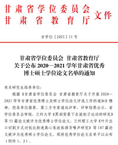 近年来,伟德体育始终坚持以习近平新时代中国特色社会主义思想为指导,坚持立德树人根本任务,大力倡导科学严谨的学风和勇于创新的精神,加大研究生学位论文指导力度,认真落实导师责任制,强化学位论文研究的过程管理。采取切实有效措施,认真抓好论文开题、预答辩、学术不端行为检测、匿名评阅、论文答辩等环节,建立健全质量监控体系,不断提高硕士研究生学位论文水平。获评省优秀硕士论文,这是公司公司产品质量提升的重要体现。