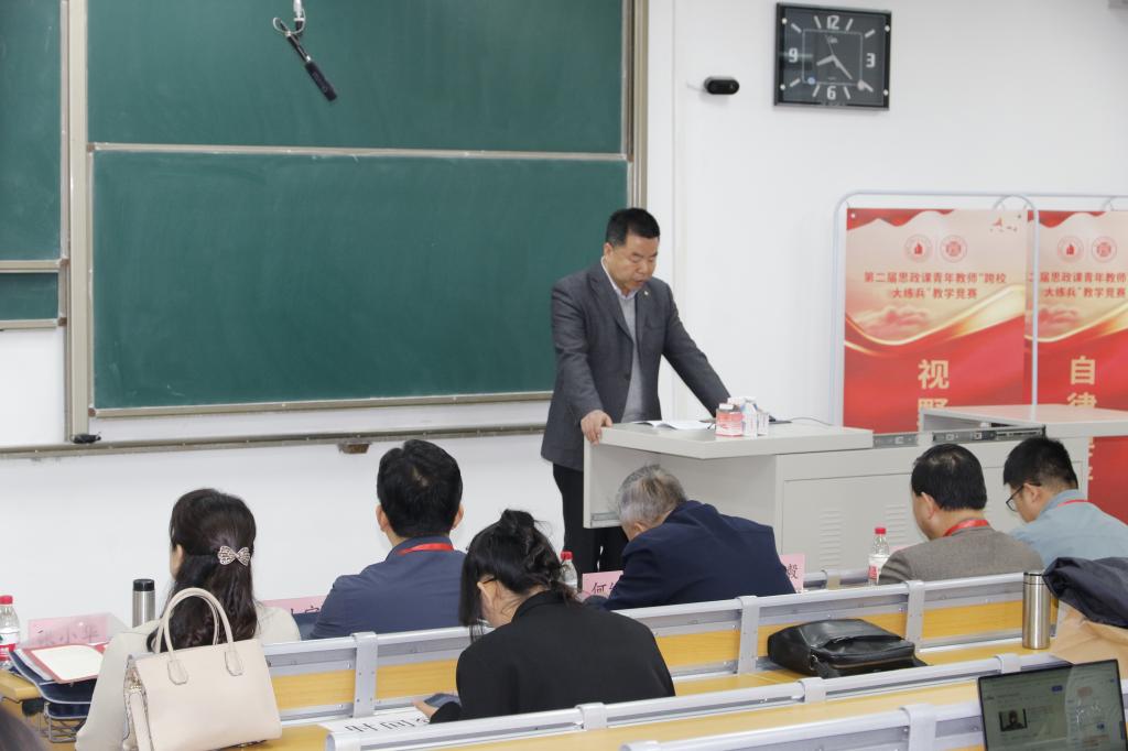 bevictor伟德官网教务处副处长常蓬浩发表致辞。常蓬浩指出,思想政治理论课是思想政治工作的主渠道、主阵地,办好思想政治理论课,是我国高等教育的一项长期战略任务。近年来,bevictor伟德官网高度重视思政课的建设,将思政课列为公司重点课程予以支持。在全校师生的努力下,思政课建设取得了具有显示度的重要成绩,“思想道德与法治”课获批国家一流本科课程,饶旭鹏教授主持的思政课名师工作室于2021年获批“全国高校思政课名师工作室”。常蓬浩对本次活动及参赛青年教师表达了期许,希望各位参赛青年教师在本次竞赛中坚持正确的政治方向,以生动的案例鼓舞人,按照“八个相统一”的要求,讲好本次思政课,同时珍惜本次难得的学习机会,发现自身的不足,取长补短、互相学习、共同提高。